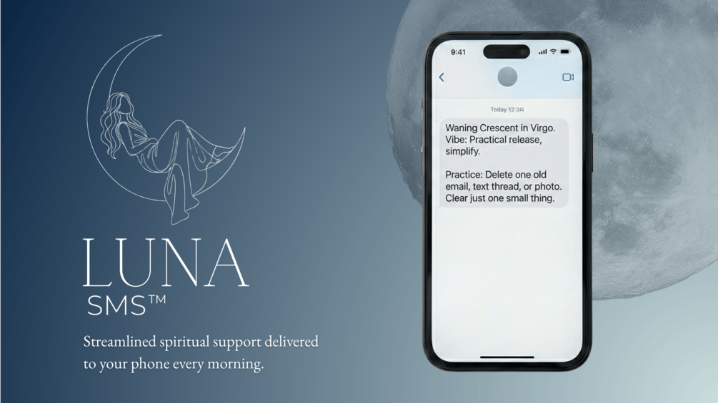 Life is full, and spirituality shouldn’t feel like one more thing you’re failing at. Luna SMS is your daily anchor, delivering a single, bite-sized spiritual micro-practice straight to your phone each morning. Aligned with the current moon phase, this 30-60 second practice meets you where you are, helping you feel grounded, connected, and powerful in the small pockets of time you already have.